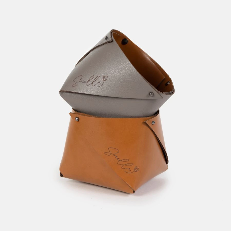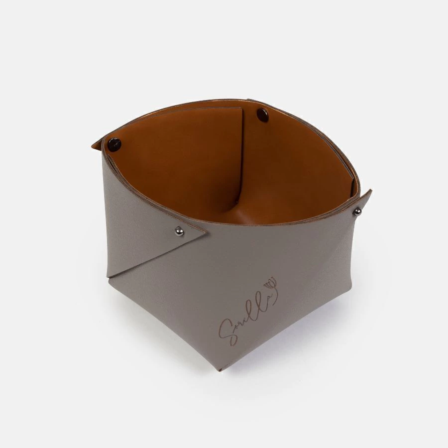Transforme qualquer ambiente com nosso cachepot dupla face, ideal para diversas utilizações. Use-o para armazenar cápsulas de café, toalhinhas no lavabo, plantas ou até pincéis de maquiagem. Este produto é um convite à criatividade, permitindo que você monte a peça na cor que preferir, destacando os quatro pinos de metal. Feito de um Laminado Sintético de PU, possui resistência e qualidade, mantendo a linha cruelty free. As medidas compactas e o design elegante fazem dele uma adição perfeita para casa ou escritório. Escolha entre as cores cinza e ocre e dê um toque especial ao seu décor.