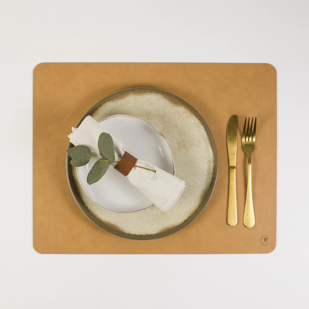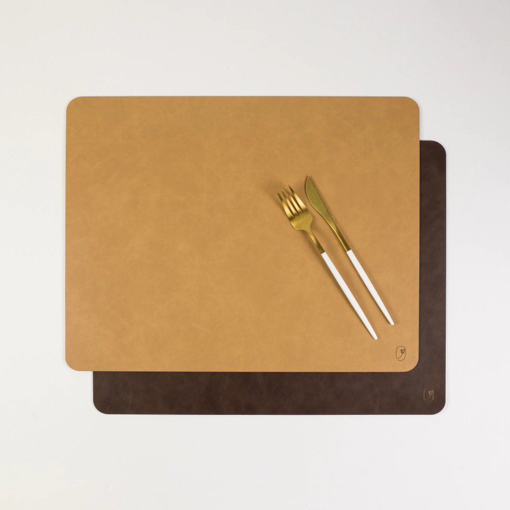 Lugar Americano Retangular dupla face. O formato tradicional é decorativo e prático, uma vez que é fácil de limpar. Por serem reversíveis e possuírem cores diferentes em ambos os lados, possibilitam diversas alternativas e configurações para sua mesa posta.